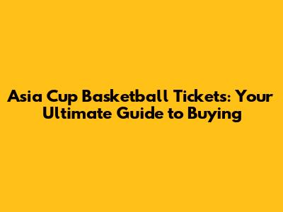 Asia Cup Basketball Tickets: Your Ultimate Guide To Buying