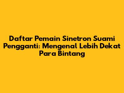 Hai, guys! Kalian para penggemar setia sinetron Indonesia, pasti udah gak asing lagi sama judul Suami Pengganti, kan? Sinetron yang satu ini emang berhasil bikin kita semua penasaran dengan lika-liku kehidupan para karakternya. Nah, kali ini kita bakal kulik lebih dalam tentang para pemainnya. Siapa aja sih aktor dan aktris yang berhasil menghidupkan karakter-karakter di Suami Pengganti? Yuk, simak daftar lengkapnya beserta profil singkat dan peran mereka!