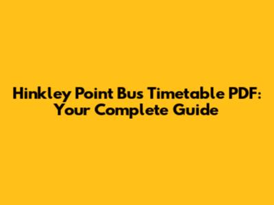 Why You Need a Hinkley Point Bus Timetable PDF