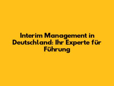 Interim Management In Deutschland: Ihr Experte Für Führung