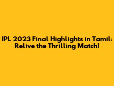 Hey guys! Cricket fans, get ready to dive back into the electrifying atmosphere of the IPL 2023 Final! If you're looking for the IPL 2023 Final highlights in Tamil, you've come to the right place. This article is your one-stop shop to relive every thrilling moment, every incredible catch, and every boundary that made the final match of the season an unforgettable spectacle. We'll explore the key moments, the standout performances, and how you can easily access the highlights in Tamil, ensuring you don't miss a single second of the action. So, buckle up, grab your virtual popcorn, and let's get started on this exciting journey back to the heart-stopping IPL 2023 Final!