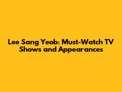 Lee Sang Yeob: Must-Watch TV Shows And Appearances