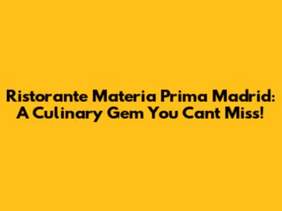 Materia Prima Madrid: A Culinary Gem You Can't Miss!