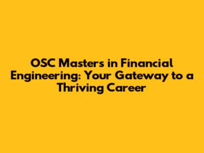 OSC Masters: Your Path To Financial Engineering