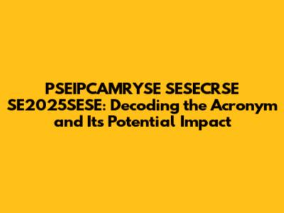 Alright, guys, let's dive headfirst into this intriguing jumble of letters and numbers: PSEIPCAMRYSE SESECRSE SE2025SESE. It looks like a secret code, right? Well, in a way, it is a code, possibly representing a specific project, initiative, or forecast related to a particular field. The challenge, of course, is figuring out exactly what that field is and what the acronym stands for! Because currently this string of words doesn't make any sense to people.