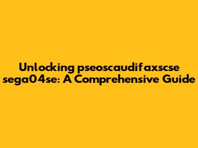 Unlocking Pseoscaudifaxscse Sega04se: A Comprehensive Guide