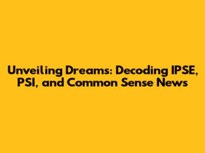 Unveiling Dreams: Decoding IPSE, PSI, And Common Sense News