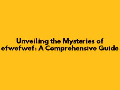 Unveiling The Mysteries Of Efwefwef: A Comprehensive Guide